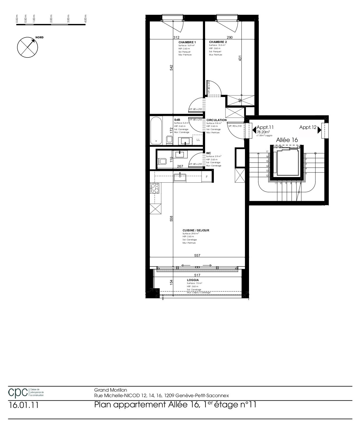 Appartement de 4 pièces situé au 1er étage (allée 16), rue Michelle-Nicod 16, 1202 Genève.
